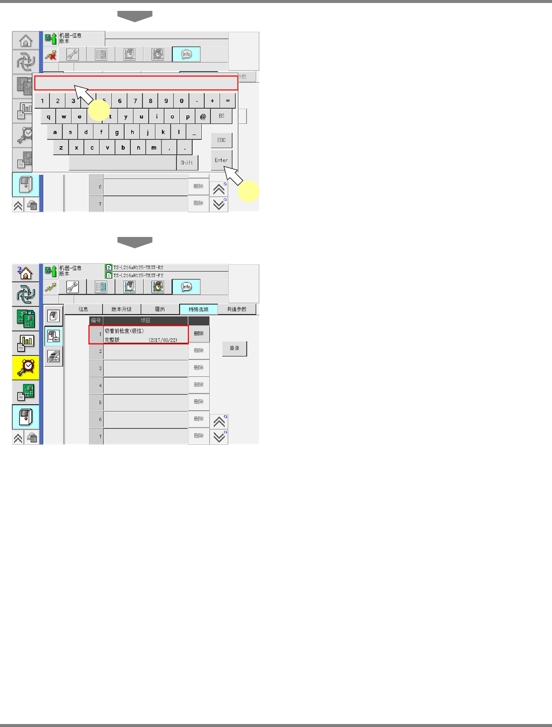 机器上粘贴的产品铭牌上的序列号不同时,将