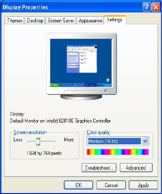 → Set the "Screen resolution" slider to "1024 by 768 pixels".