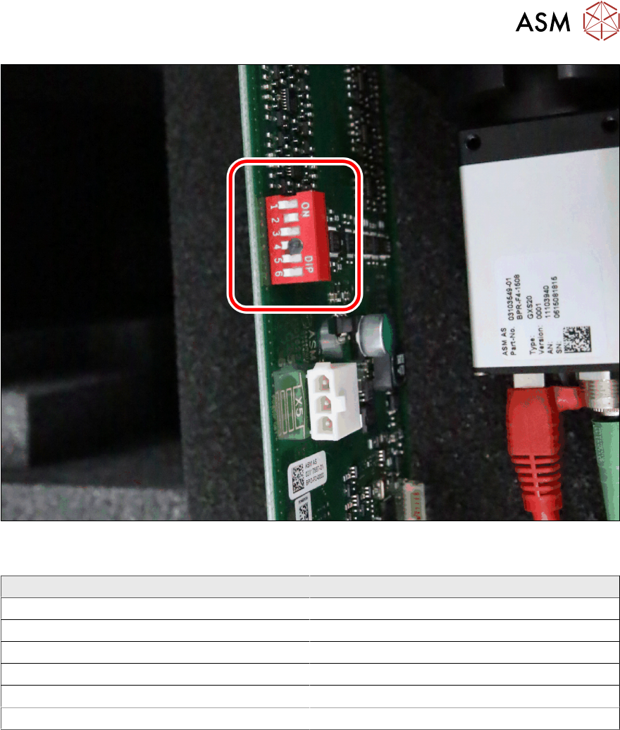 2 Installation 2.3 Installation of the SST25 camera Assembly Instructions E by SIPLACE SST25 Camera Option 03/2018 17 Fig.6: Dip switch ► Set the dip switch as shown. Dip Switch Number ON / OFF 1 OFF 2 ON 3 OFF 4 OFF 5 …