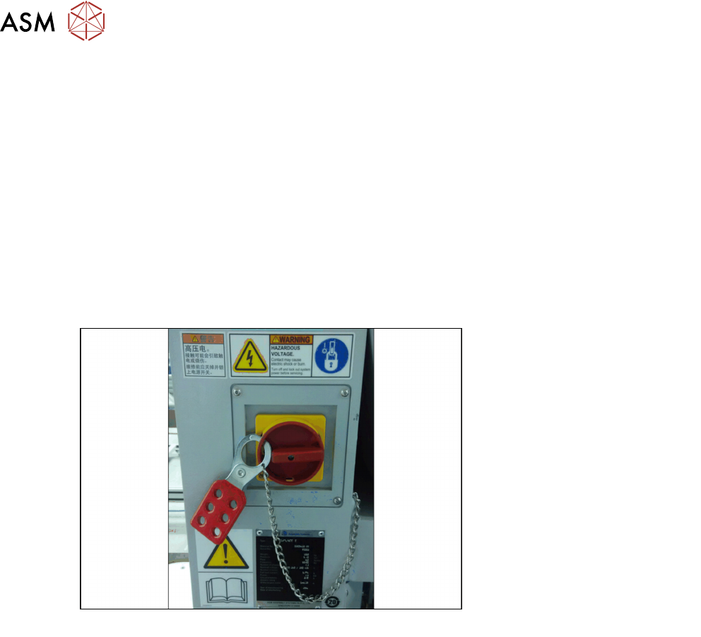 ð Attach a lock wherever possible (e.g. to the main power switch or the motor contactor).