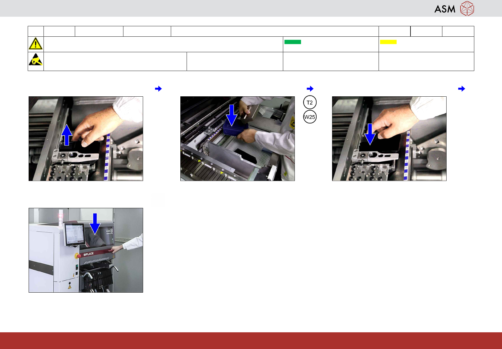 13 WF 2 TX-Series V2 维护 校准已维护好的 C&P20x 贴片头 3 分钟 3 / 4 注 意 开 始 维 护 前 , 请 参 阅 用 户 手 册 中 的 安 全 说 明 贴片机状态开启 传送导轨 空 注意! 遵守防静电守则 工具: T2、T4、T100 易损件: W25 耗材: www.asm-smt.com 13 检查/更改吸嘴配置,点击“Start(开 始)”图标。 14 按下 Start (开启)…