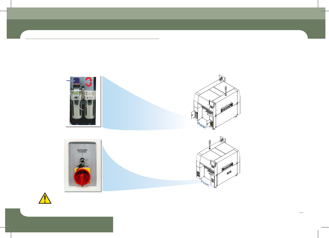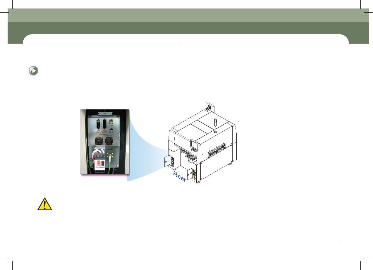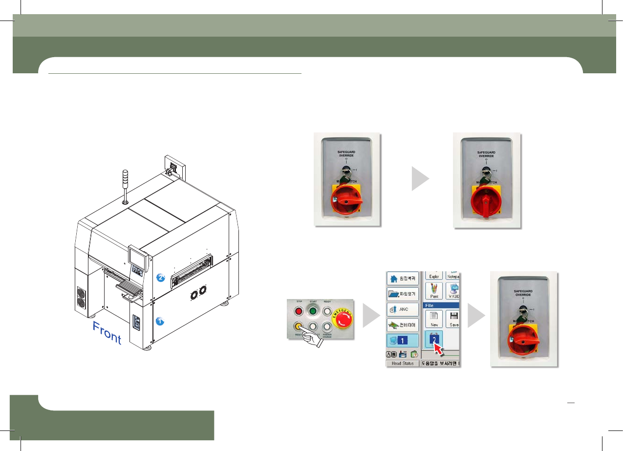 SM431 Operation Handbook 16 Chap ter 2 Fast & Flexible Chip Shooter 电 源 供 给 及 生 产 前 准 备 程 序 本部 分主 要介 绍电源 供应 方法 及生产 开始 前的 检验 事项 。 生 产前 准 备程 序 1 . 检 验 事项 1 . 确 认 电源 连接 状态 - 打开设备的电源之前必须检验设备内部及其周围环境。 - 如果设备内部和供给装置上有杂质,请清…