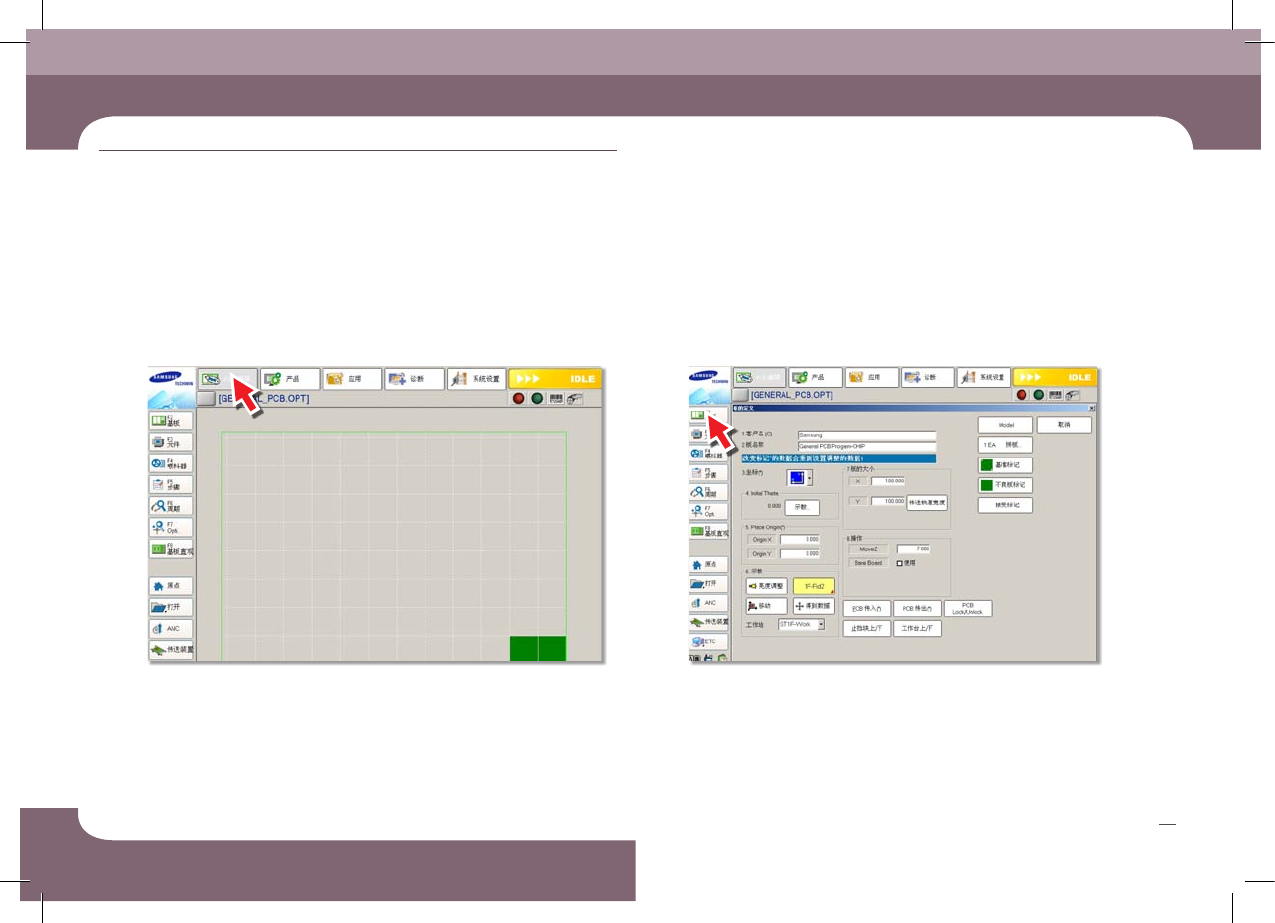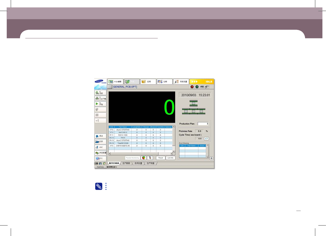 SM431 Operation Handbook 24 Chap ter 3 Fast & Flexible Chip Shooter - PCB 文件载入完毕后的画面。 生 产 本章 节主 要介 绍生产 作业 顺序 1 . PC B 文 件 的 载 入 5. PCB 文 件载 入完 毕 扩展 名为 . opt 的文 件是 已完成 最佳 化的 文件 。