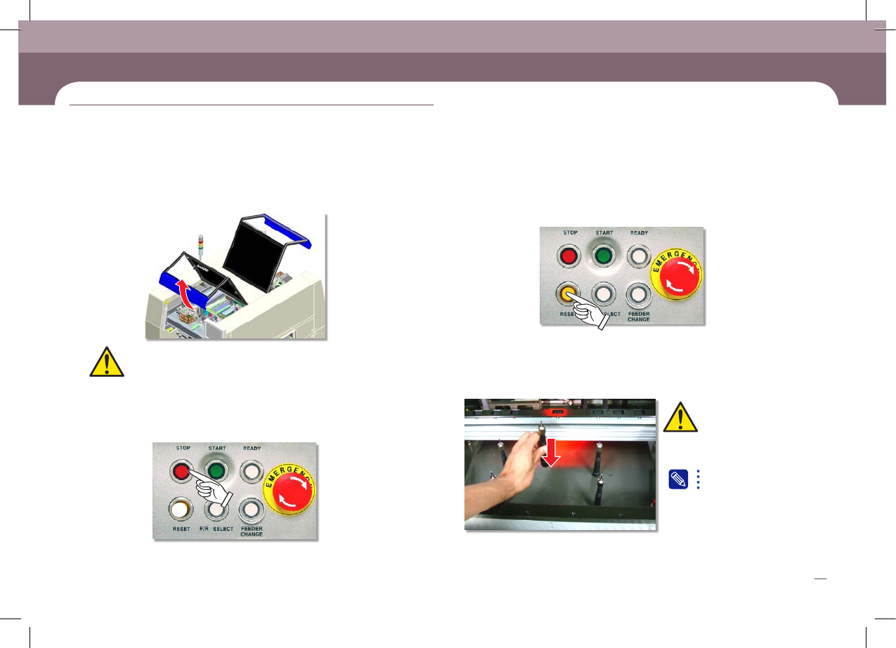Chapte r 3 生产 SM431 Operation Handbook 29 Chap ter 3 Fast & Flexible Chip Shooter 生 产 本章 节主 要介 绍生产 作业 顺序 3 . Bac ku p Pi n 的 配置 5. 关闭 前/ 后 安 全 门 6. 按 ’READ Y’ 按 钮