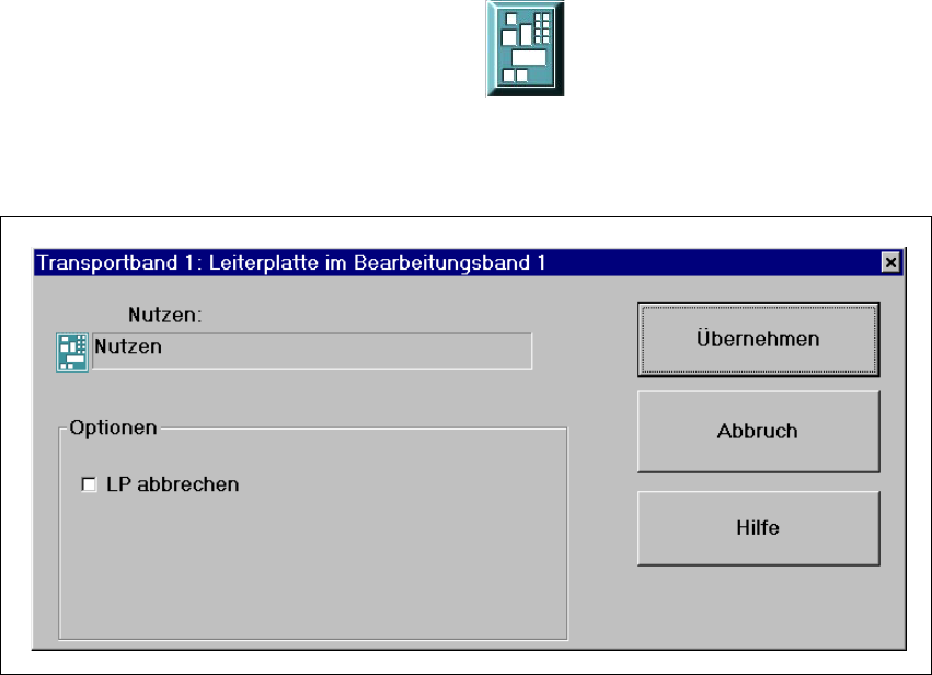 Abb. 3.2 - 3 Dialog „Transportband 1: Leiterplatte im Bearbeitungsband 1" (Beispiel: S-25 HM)