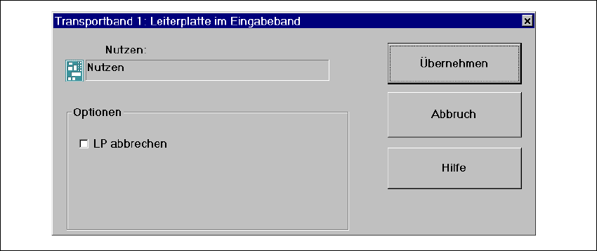 Befindet sich die Leiterplatte im Eingabeband, wird folgende Dialogbox geöffnet. 3