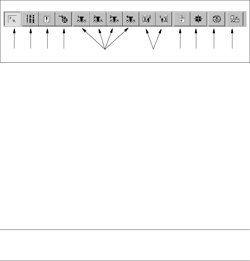 SIPLACE S oftwareanleitung SR.503.xx 3 Grafische Bedienoberfläche Ausgabe 12/01 DE 3.2 Komponenten der Bedienoberfläche 31 3 (grün) st artet die kon t extsensiti ve Hilfe zur aktuell en Ansicht 3 3 ( rot) startet das Hil…