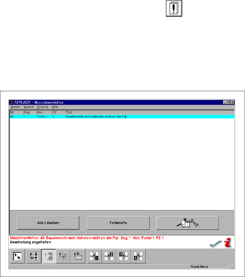 5 Fehlerinformation und Technical Solution System (TSS) SIPLACE Softwareanleitung SR.503.xx 5.2 Fehlerinformationen abrufen Ausgabe 12/01 D E 70 5.2.2 Inform ationen zu einem ausg ewählten Fehler an zeigen Klic ken S i…