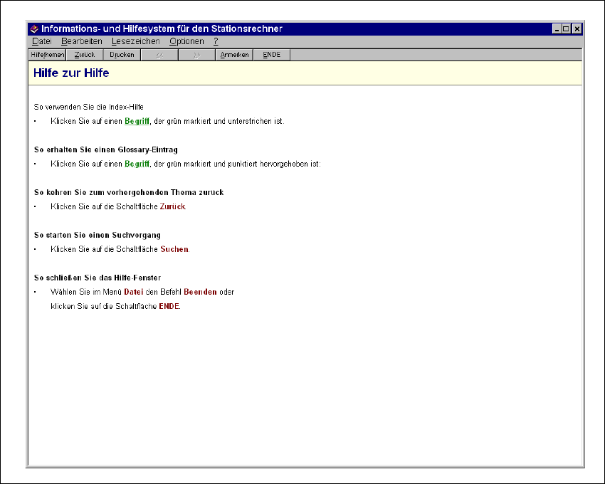 strichen dargestellt. Wird so ein Eintrag angeklickt, schaltet der Anzeigebereich auf die Hilfe