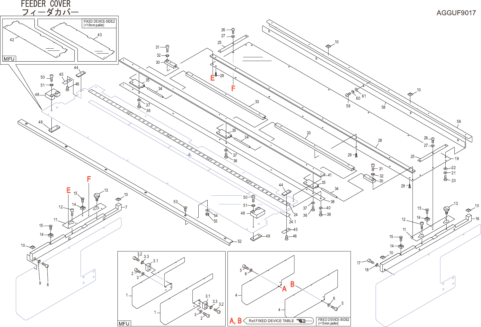 FEEDER COVER フィーダカバー AGGUF9017 No. Drg.No. & Code No. QTY Description Rating Materials Remarks 番号 図番 & コード番号 個 数 品名 規格 材質 備考 1 GGUF0910 2 PLATE, SIDE プレート サイド FE MFU 2 H5298A 4 BOLT, HEX SOCKET ボルト 六角穴 M05X010 F…
