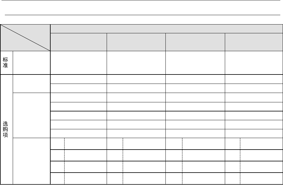 ※上表为机器出厂时的规格。