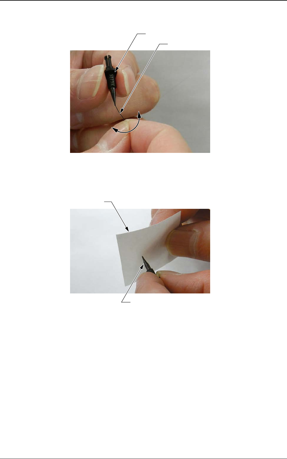 (3) Fahren Sie mit dem Prüfstift in Längsrichtung des Aufnehmers, um die