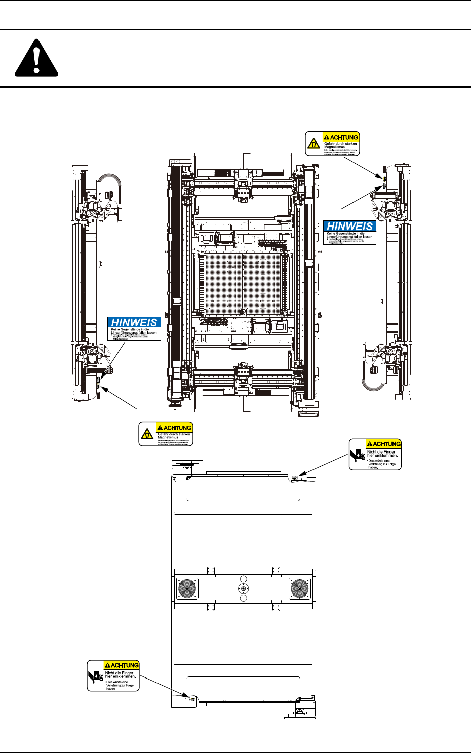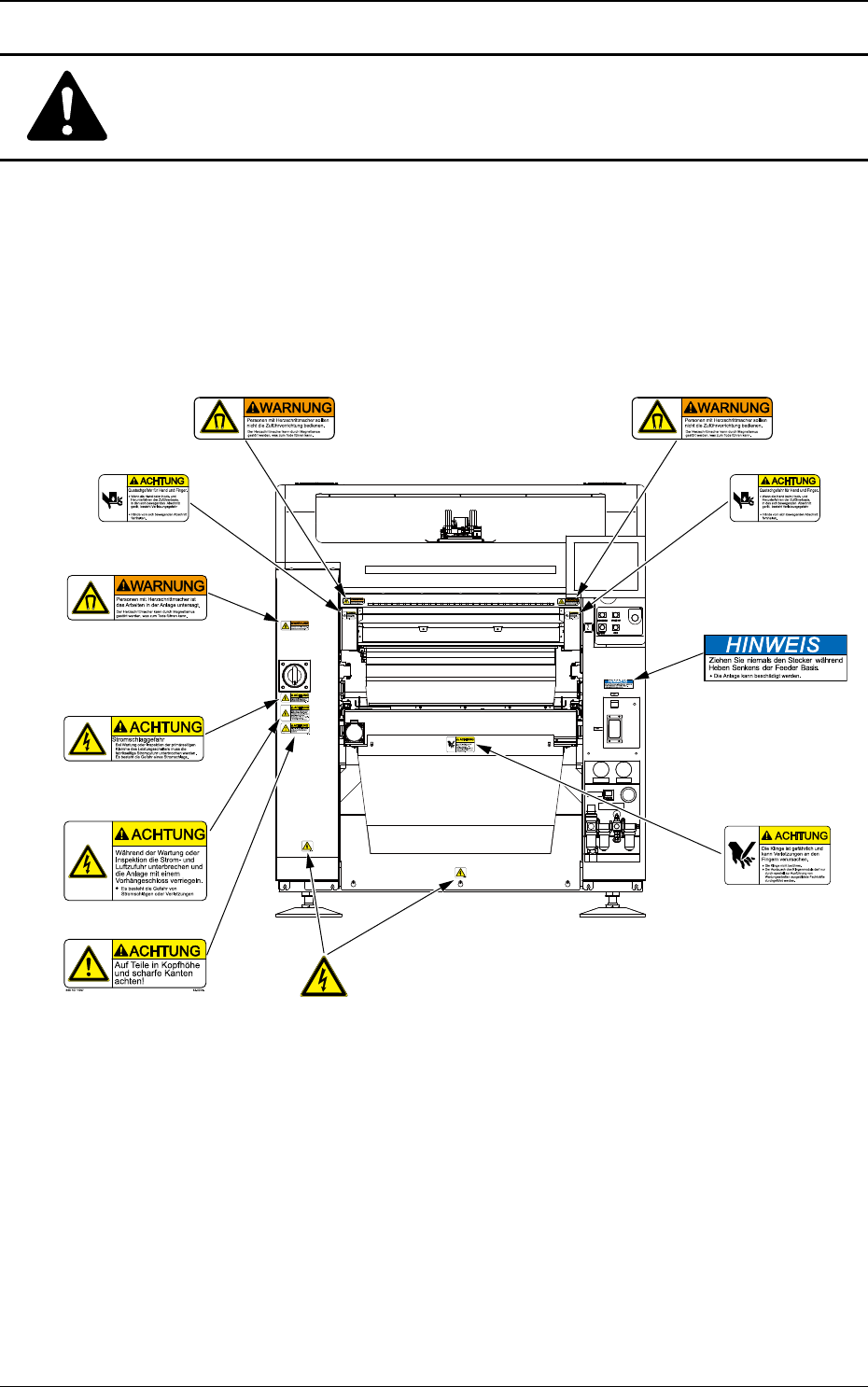 Positionen der Gefahrenaufkleber.