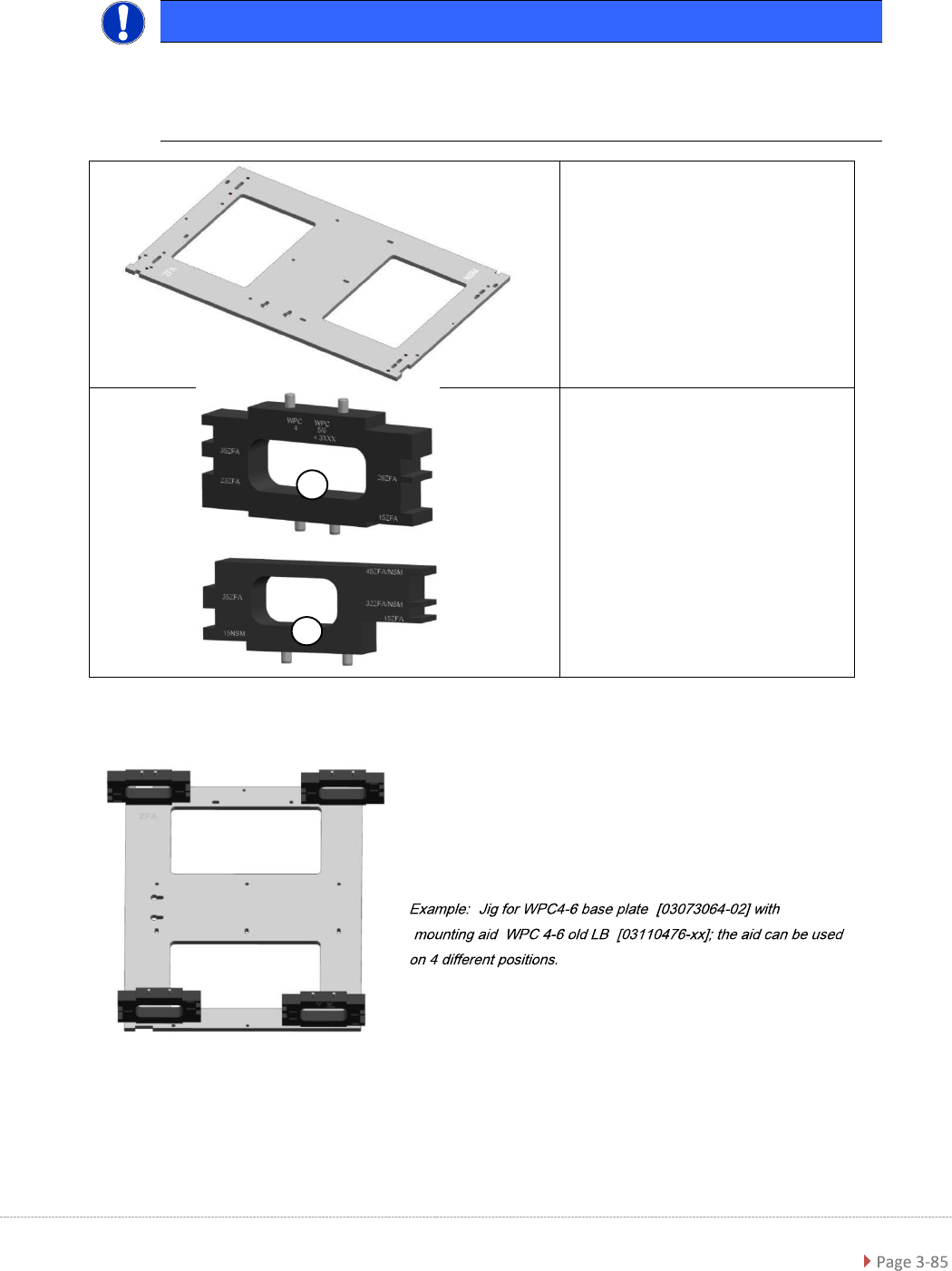 ➢ Move the „Jig for WPC4-6 base plate“ [03073064-01] with the corresponding mounting aid to