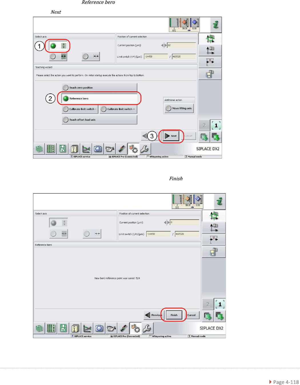 Service Ma nual W PC5 / WPC6 4.1.3 Reference Proximity Switch (Bero) ➢ Remove al l waffle-pack tray c arriers (WPTC) from the WPC. ➢ Select the l ifting axis (1). ➢ Select the fu nction (2). ➢ Select (3). ➢ Confirm the n…