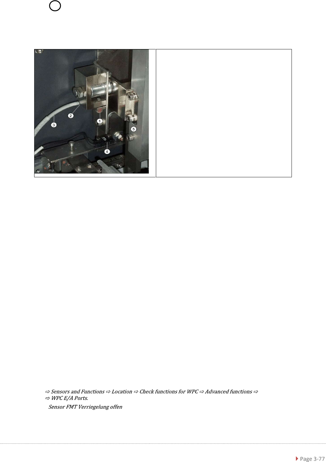 Service Ma nual W PC5 / WPC6 3.7.2 Sensor 1 "WPTC av a ilable" Spare Part • Proximity switch for WPTC available sensor [03056 853-xx] Removal / Install ation ➢ Loosen the 6 screws fastening the metal cover on t…