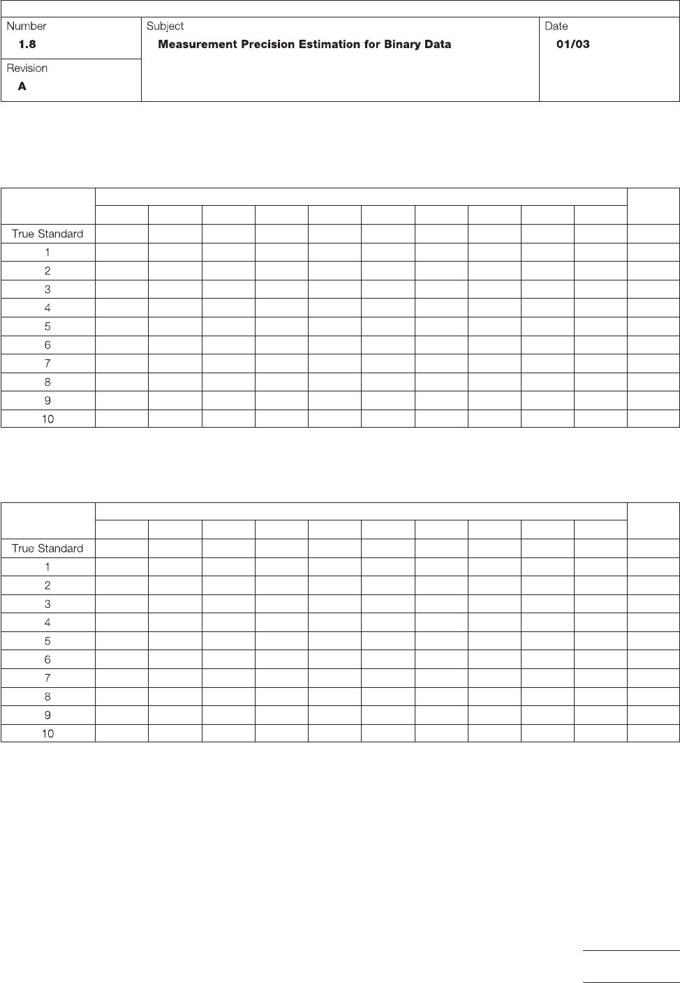 T a ble 1: Data Entry Form Enter test results into the table below . T ester Samples 1 2 3 4 5 6 7 8 9 10 T a ble 2: Samples Dispositio ned Correctly Score a ‘‘1’ ’ where disposition in T ab le 1 above matched the true s…