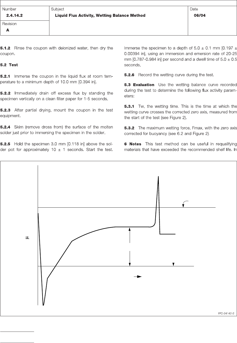 Figure 2 Wetting Ba lance Curve TIME FORCE ( N) 0 Instrument Zero Corrected Zero Fmax T w IPC-TM-650 Page 2 of 3