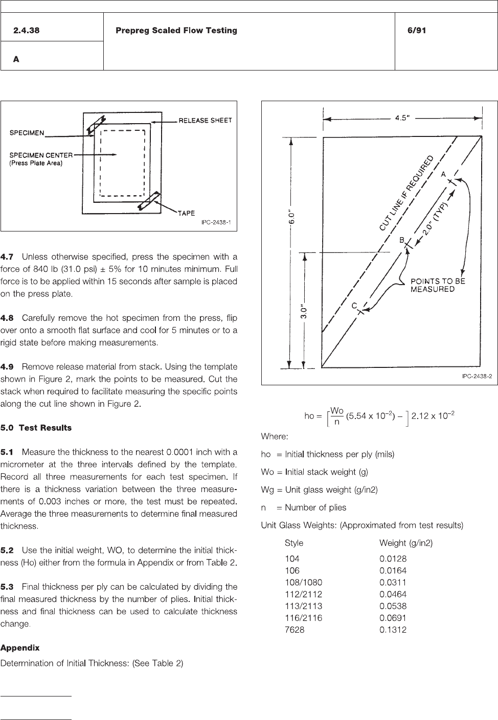 IPC -TR -48 3 Figure 1 All dimensions are in in ches. Four measurements are requir ed as indicated. Locate measuring points approximately 12.7mm [0.500 in] from each edge in the fill direction, and 25.4 mm [1.00 in] from …