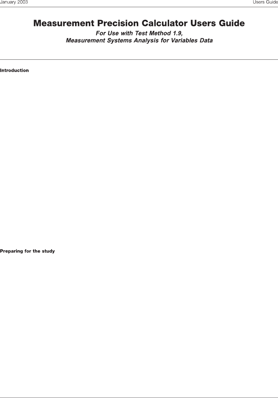 This User Guide provides detailed instructions for analyzing the MSA data on the Measurement Precision Calculator, and