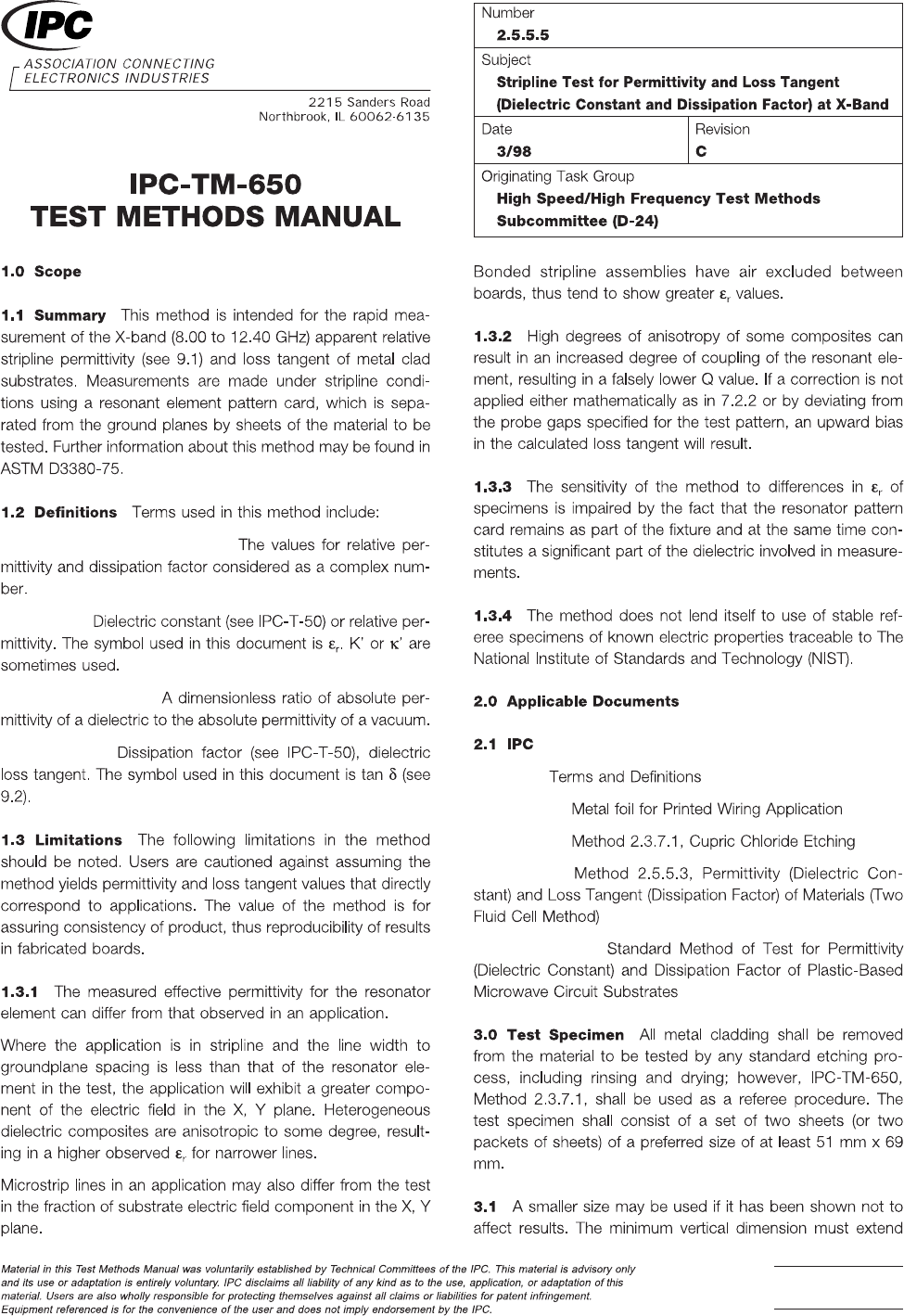 Complex Relative Permittivity Permittivity Relative Permittivity Loss T angent IPC-T -50 IPC-MF-150 IPC-TM-650 IPC -TM -6 50 ASTM D3380-75 Page 1 of 25