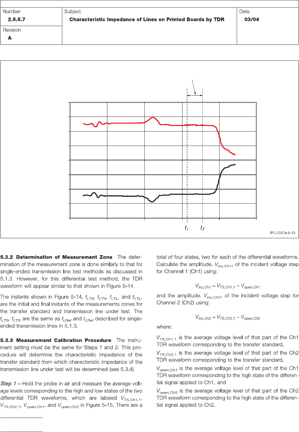 Figure 5-13 Di ff erential TDR Wav eform -0.4 -0.3 -0.2 -0.1 0.0 0.1 0.2 0.3 0.4 Time Signal (V) Ch1 Ch2 T ransmission Line Measurement Zone IPC-TM-650 Page 16 of 23