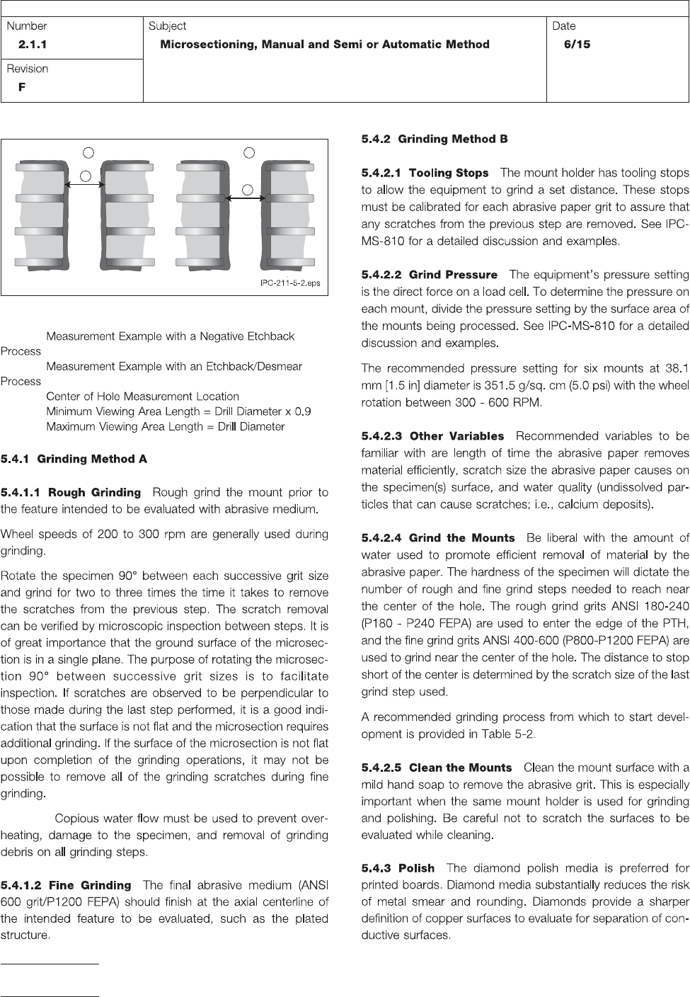 Caution: Figure 5-2 P lated Hole Micr osection (Grinding/Polishing) T olerance Note 1. Note 2. Note 3. Note 4. Note 5. 2 3 1 3 IPC-TM-650 Page 4 of 8