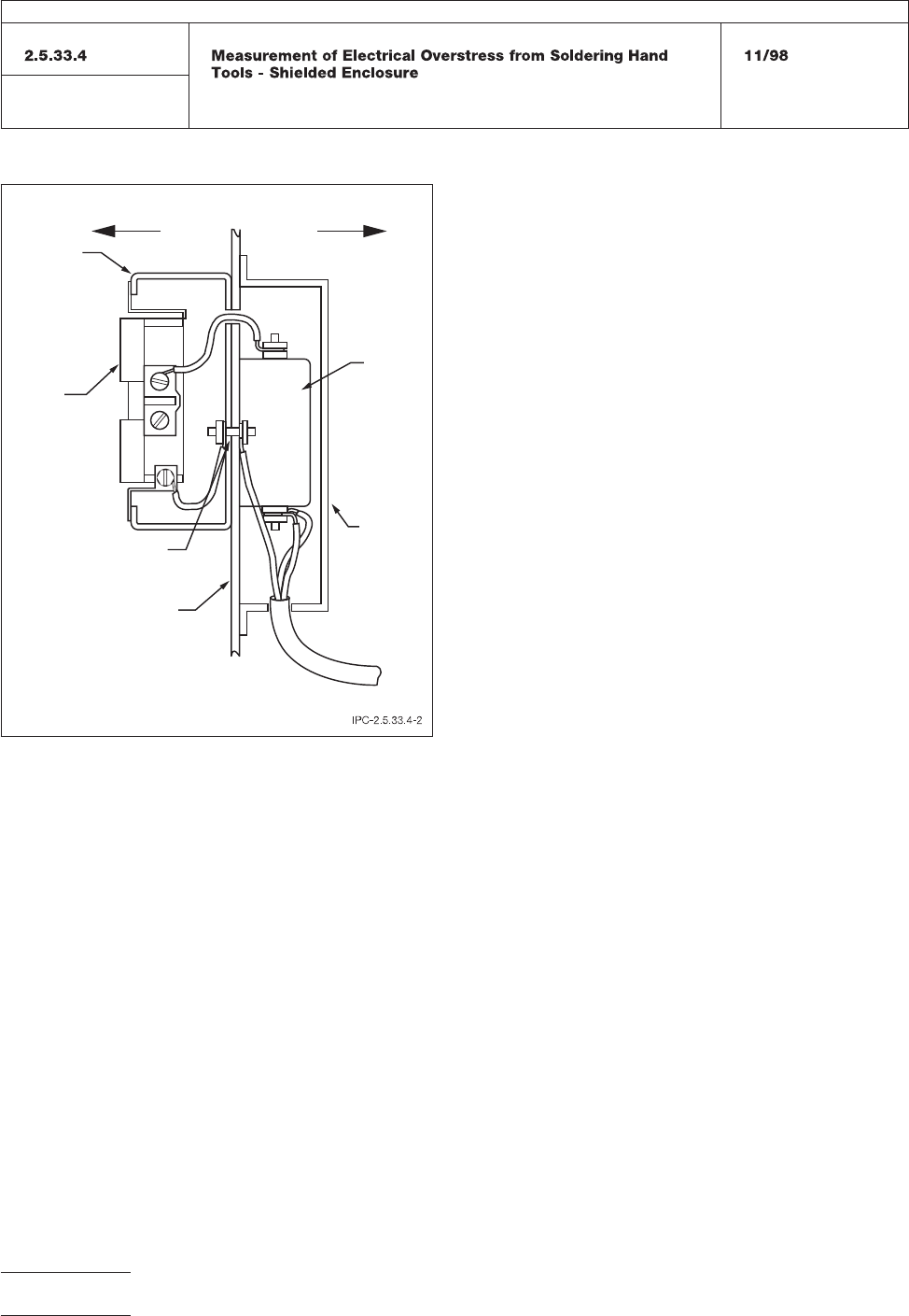 Figure 3 T est Electrode M ounting Suggestion MET AL ENCLOSURE W ALL WIRE LOOPS T O CONNECT SCOPE PROBE AND G ROUND CLIPS Outside Inside TEST ELECTRODE BOARD DUAL READOUT P ANEL MOUNT EDGE CARD CONNECTOR IPC-TM-650 Numbe…