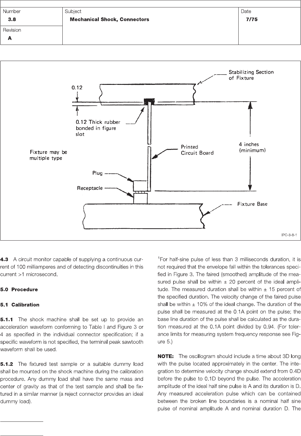 Figure 2 Pa rallel Connector Fixtur e (Suggested) T able I T est Conditions T e st Condition Peak Acceleration A-Gravity Units Nominal Duration D-Milli- seconds W aveform V elocity Change Vi (G-MS) IPC-TM-650 Page 3 of 5