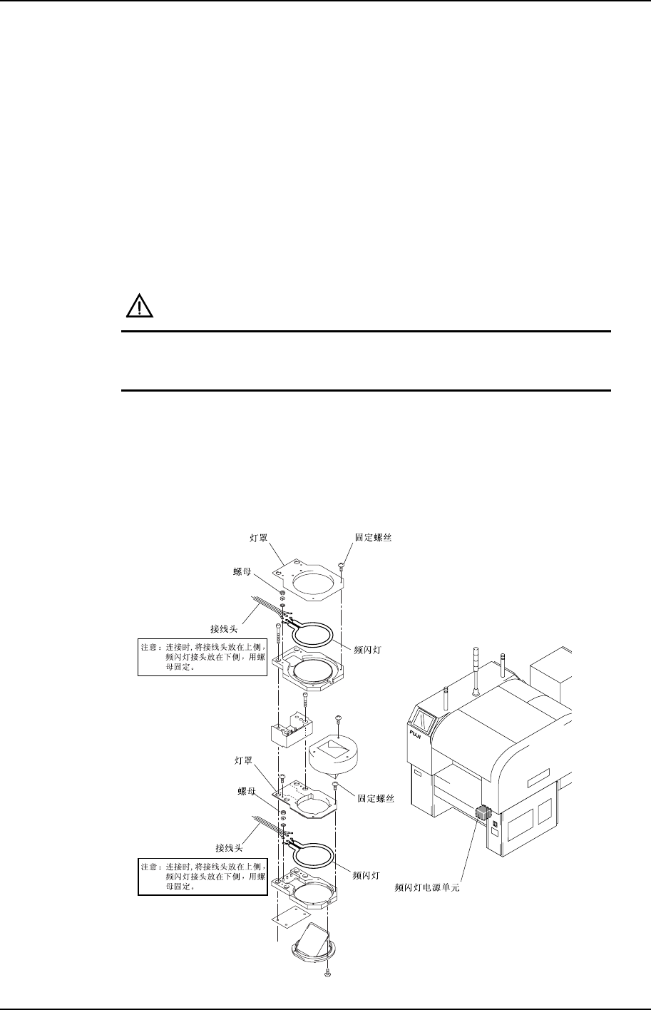 操作前切断主电源,必须等待 5 分钟后拔掉频闪灯电源装置处的插头