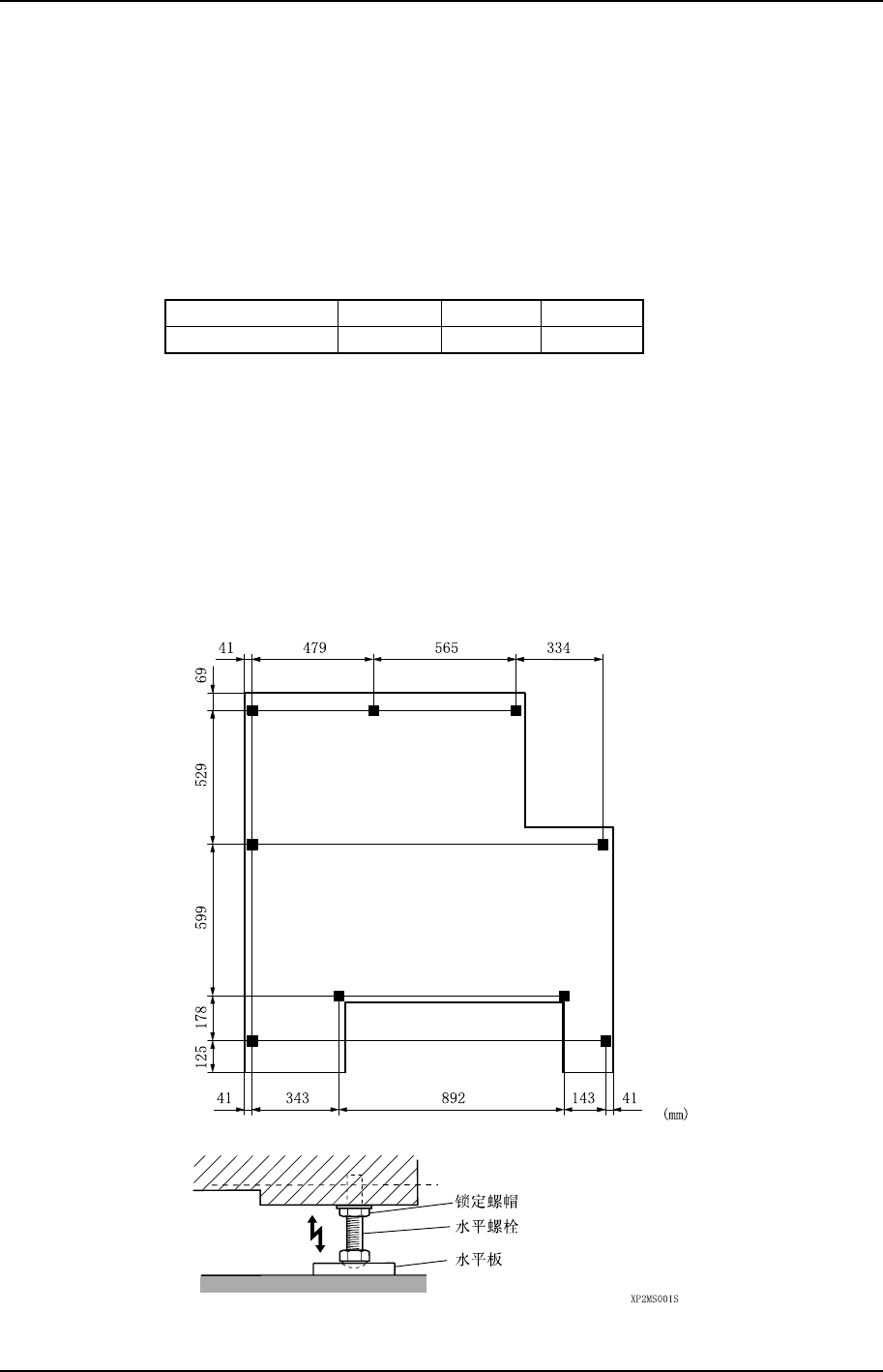 第 5 部 第 1 章 安置 Edition 1.0 5-1-1 XP-242E 机械手册 T able01S 1. 安置 要点 把水平板放在指定的位置,以确保主 机的水平。 此外,需要根据电路板的搬运高度, 选用适合的水平板。 单位 :mm 电路板搬运高度 900 950 965 水平板的高度 16 60 75 方法 1. 参 考 下图布置水平板。 2. 把 2 个水平 仪装在主机的机座上。 ( 横向和纵向 ) 3. 转动各个水平螺栓…