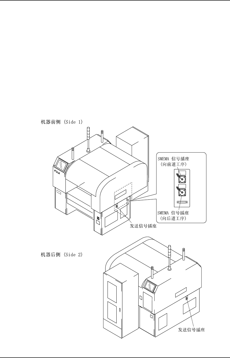 为了传输机器间电路板的交接信号,在机器之间要用 SMEMA 信号连接器和传送信号连接