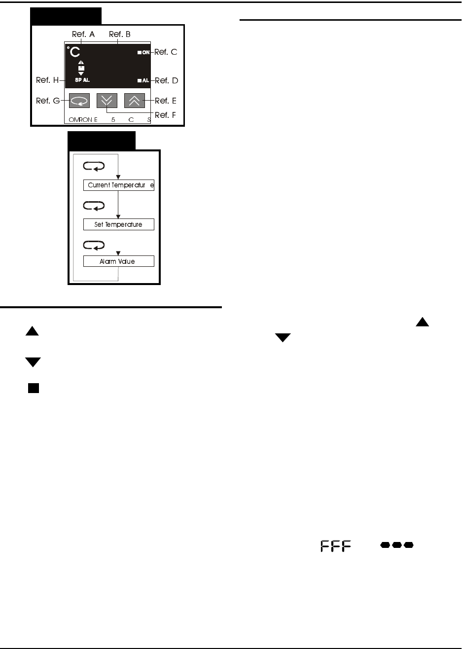 The ( ) indicator lights when the current tem-