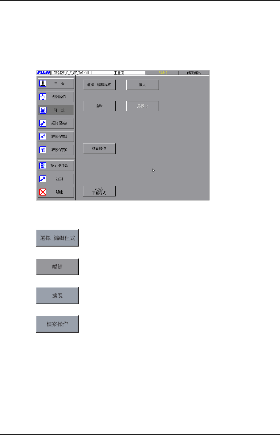 是移動到選擇生產程式或編輯程式的視窗的鍵。新建程式時也請在