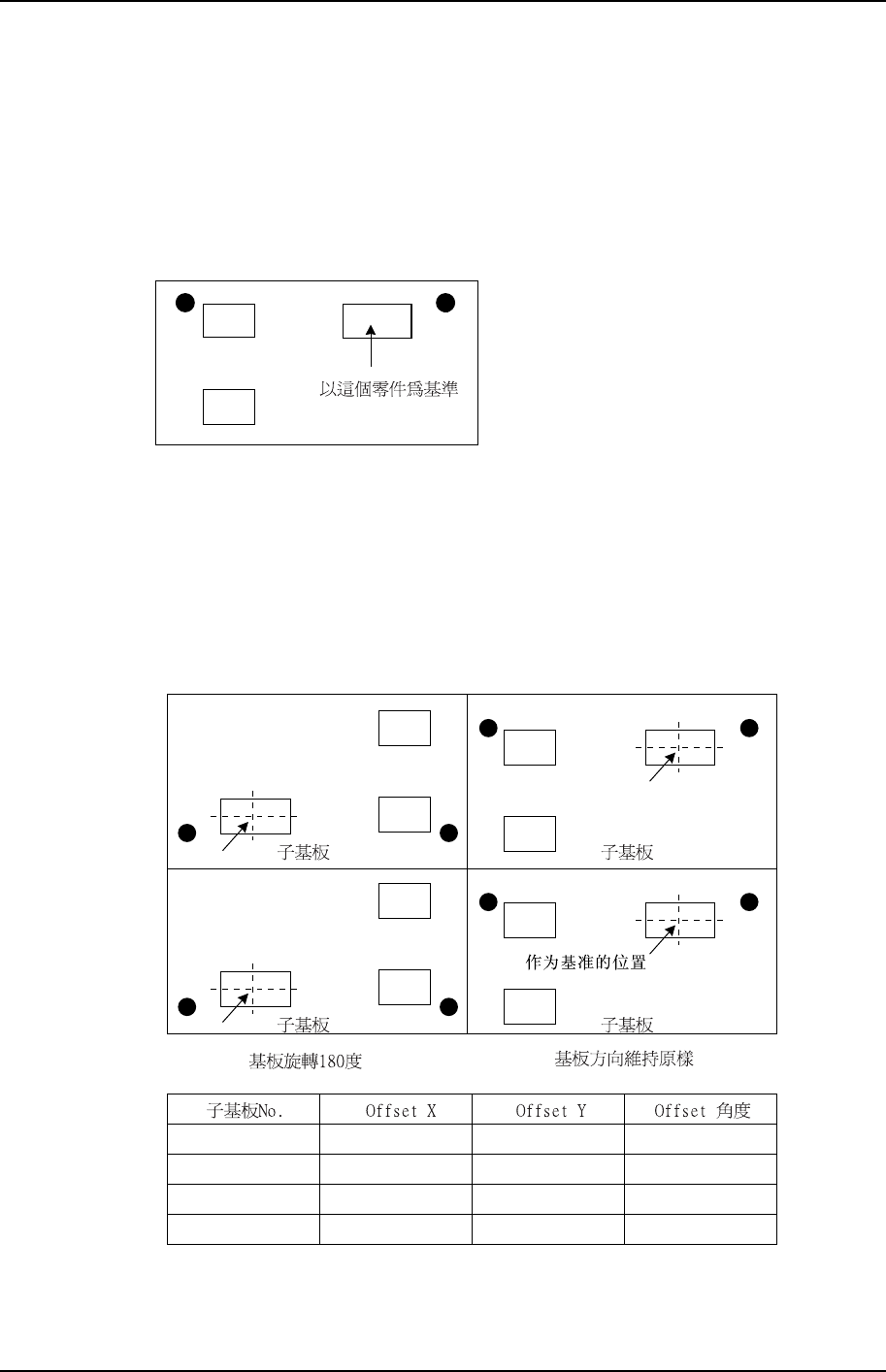 子基板 1 :輸入到基準零件的原點的距離(Offset X,Offset Y)。第 1 塊子電