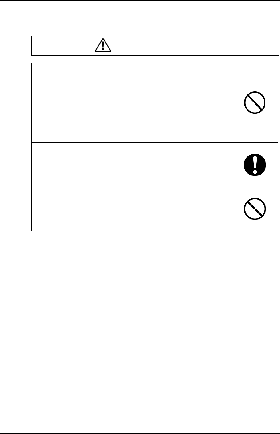 安全指南 Edition 1.0 9 XP-142E 系統 手冊 警告 請不要將安全開關處於無效狀態時操作機器。 ! 請不 要使機器的安全開關 線路 發生 短路 , 或在卸下 MFU 的狀態下 , 進行機器的運轉。 有可能被捲入到機器的運 行部位 , 是 很 危險的。卸 下 MFU 之後 , 請一定關 好 後再進行作 業 。 ! 請不要使安全開關 線路 發生 短路 , 或卸下來 , 使安全功 能處於無效。 當 使安全開關處於無效狀態時 …
