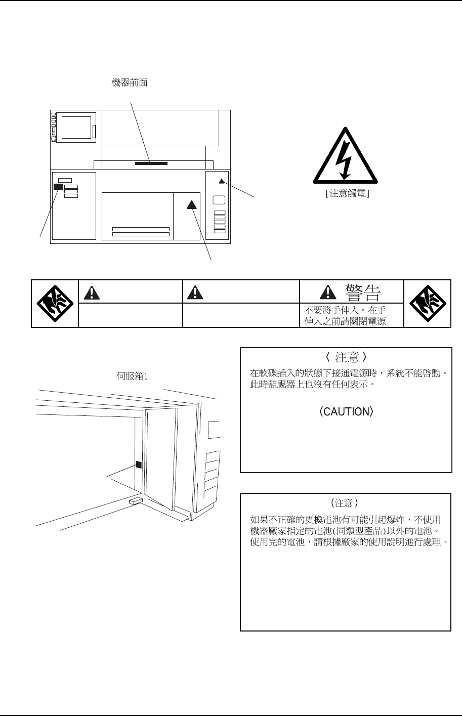 表示使用機器時的注意事 項的安 全 標記貼在本機器的如下圖所示的位置,請仔細閱讀記載