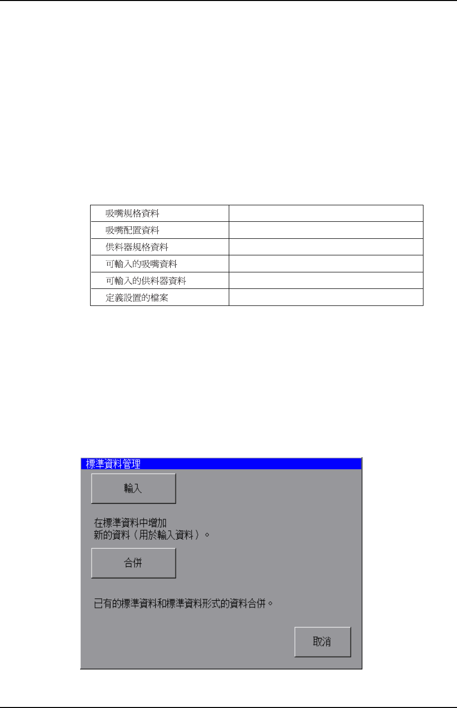 規格資料 管理功能在 XP 型號的機器上可以輸入和合併資料。規格資料是寫有使用的吸嘴和供料器