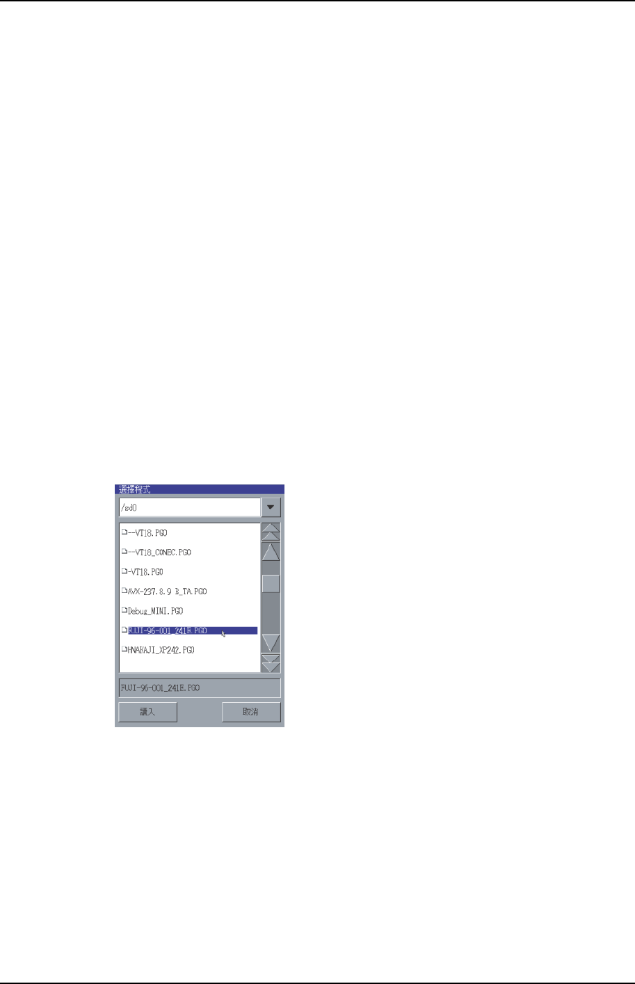 2. 選擇生產中使用的程式。選擇[讀入]鍵,讀取所選擇的程式。在畫面上方的任務欄