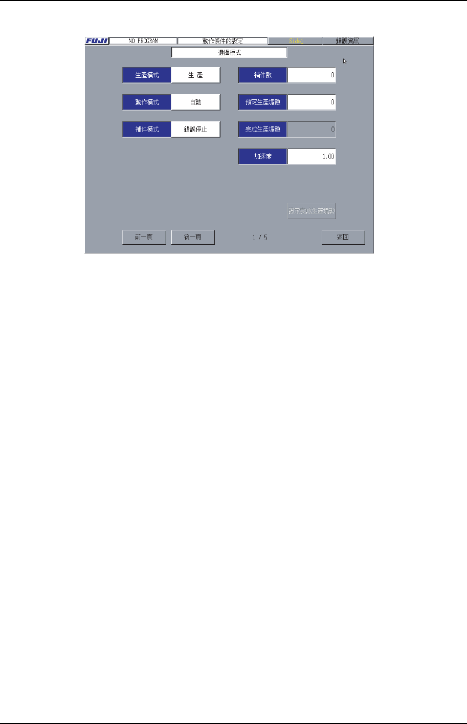 自動: 實際生產中所使用的範本。選擇此範本後,機器按照生產程式所指定的各
