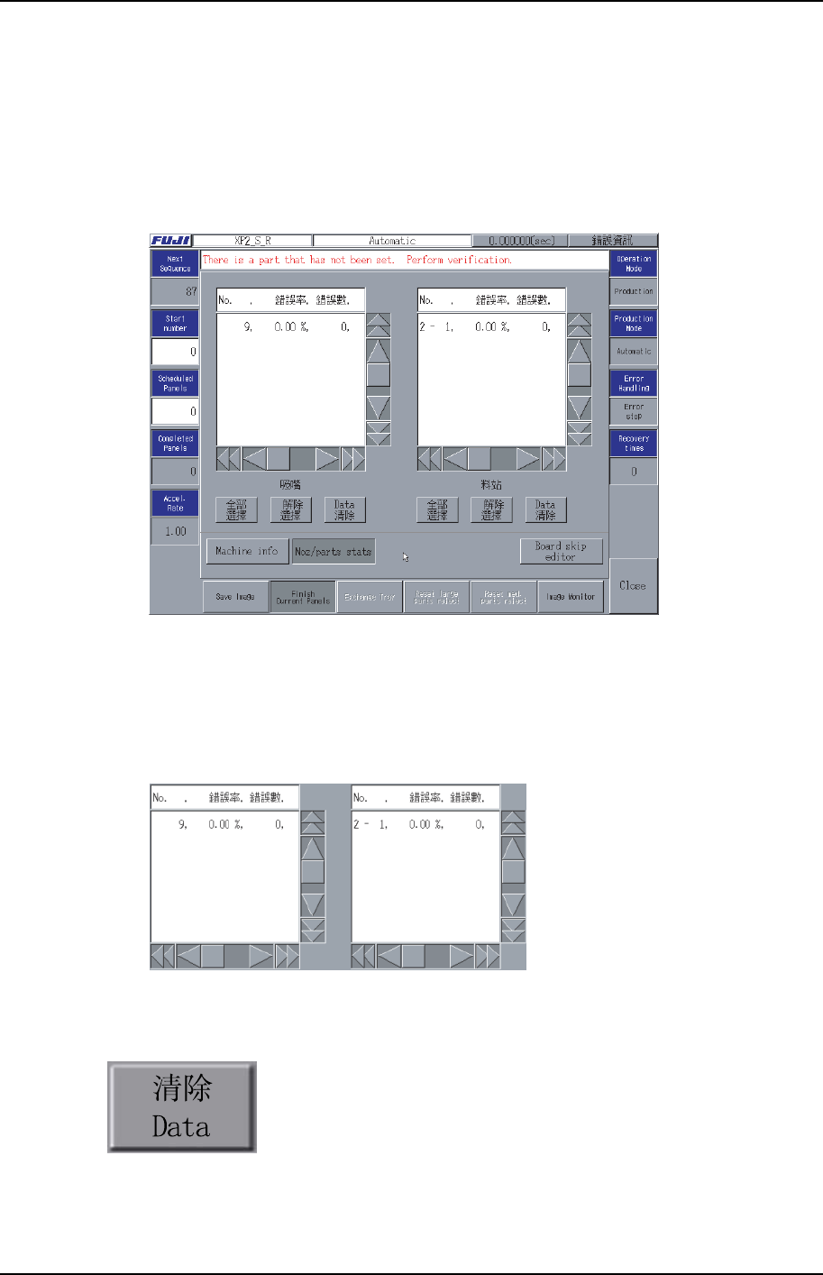 時的錯誤數(未貼裝塊數)以及吸取數。計算可分別累積各吸嘴.料站過去 1 萬次的資料。