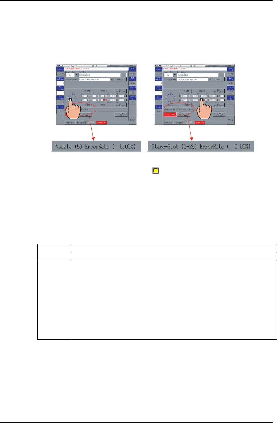 按機器資訊畫面中的吸嘴·料站顯示,則顯示錯誤率。按料盡料站後,[料盡資訊] 一覽