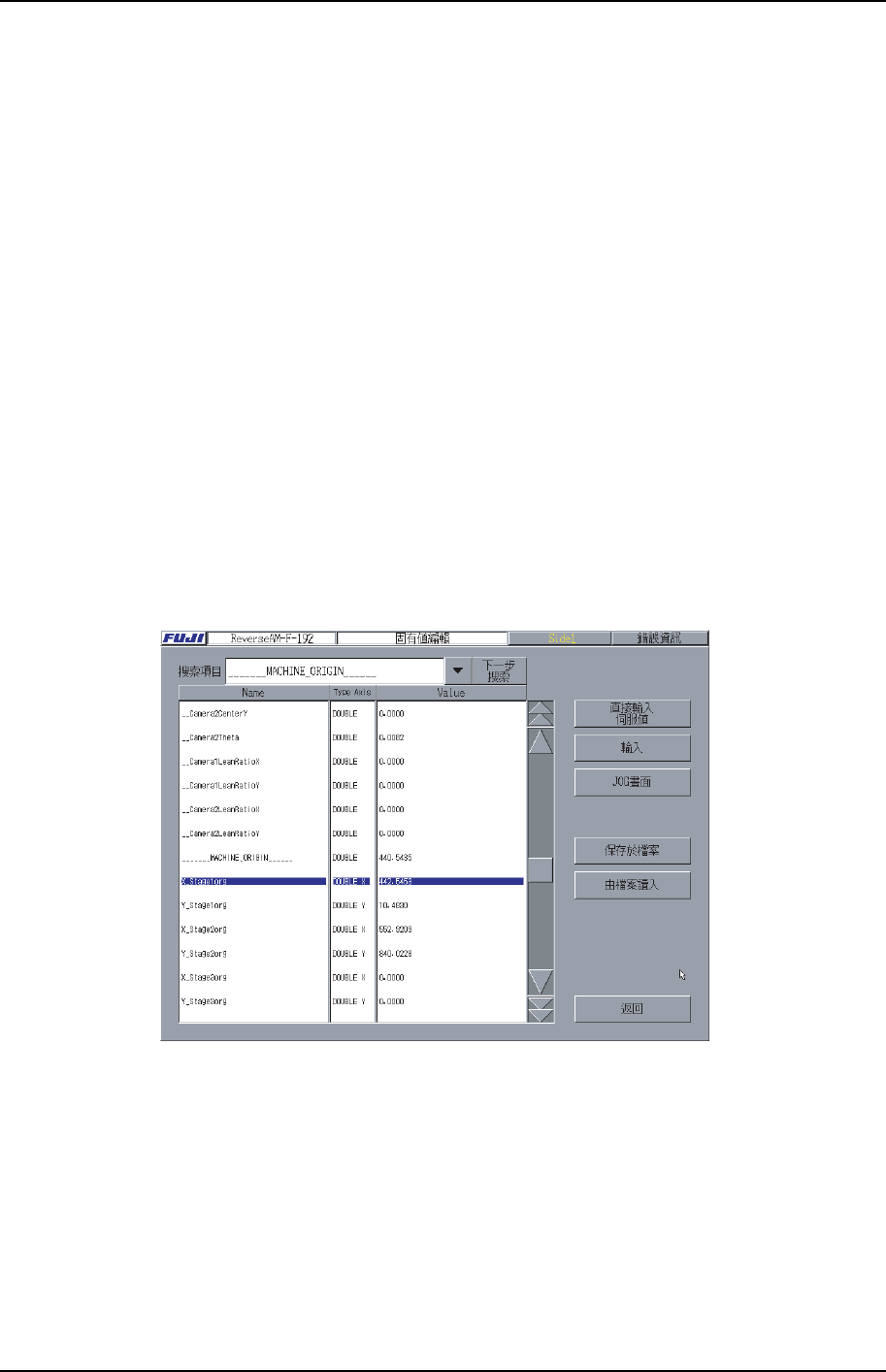 這是固有值編輯畫面。沒有正確的維修保養知識而變更資料時有可能導致機器的錯誤運
