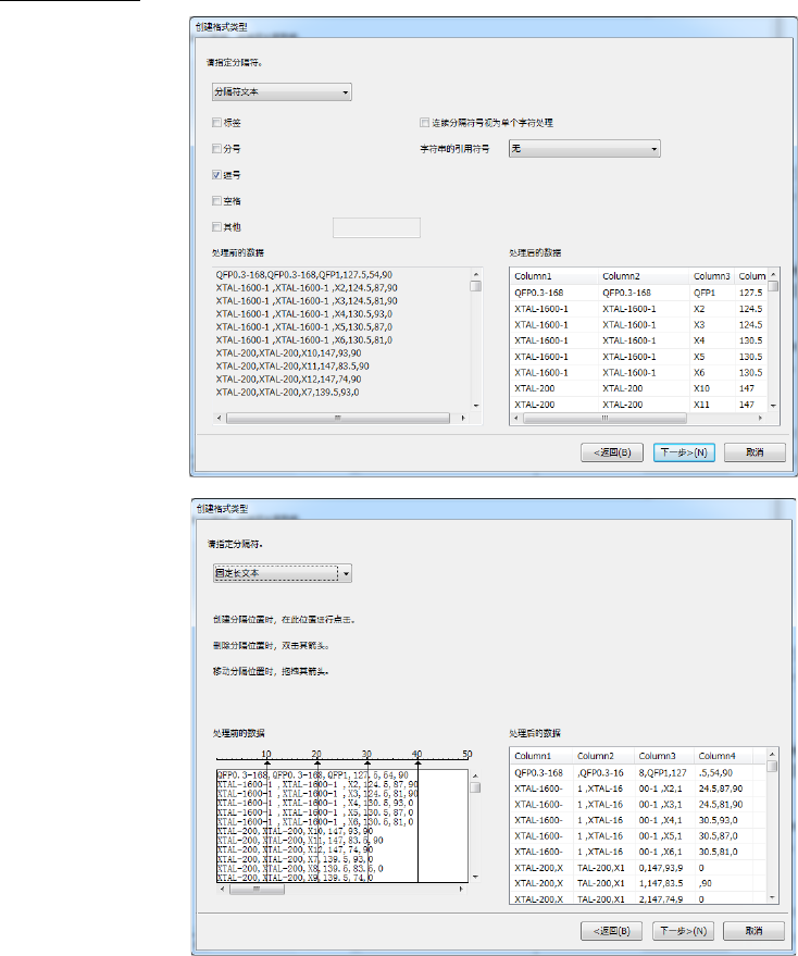 数据显示在「处理前的数据」处,被分隔符分隔的列的数据显示在「处理后的数据」处。
