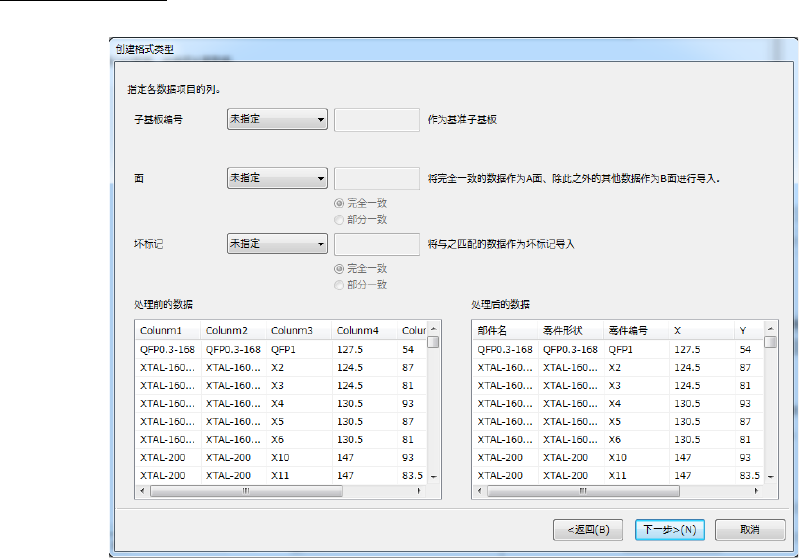 在「处理前的数据」处显示前页处理的 CAD 数据,在「处理后的数据」处显示变更了列名的数据。