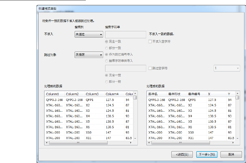 数据文件的内容,在「作为机种导入的数据」处显示按照格式类型