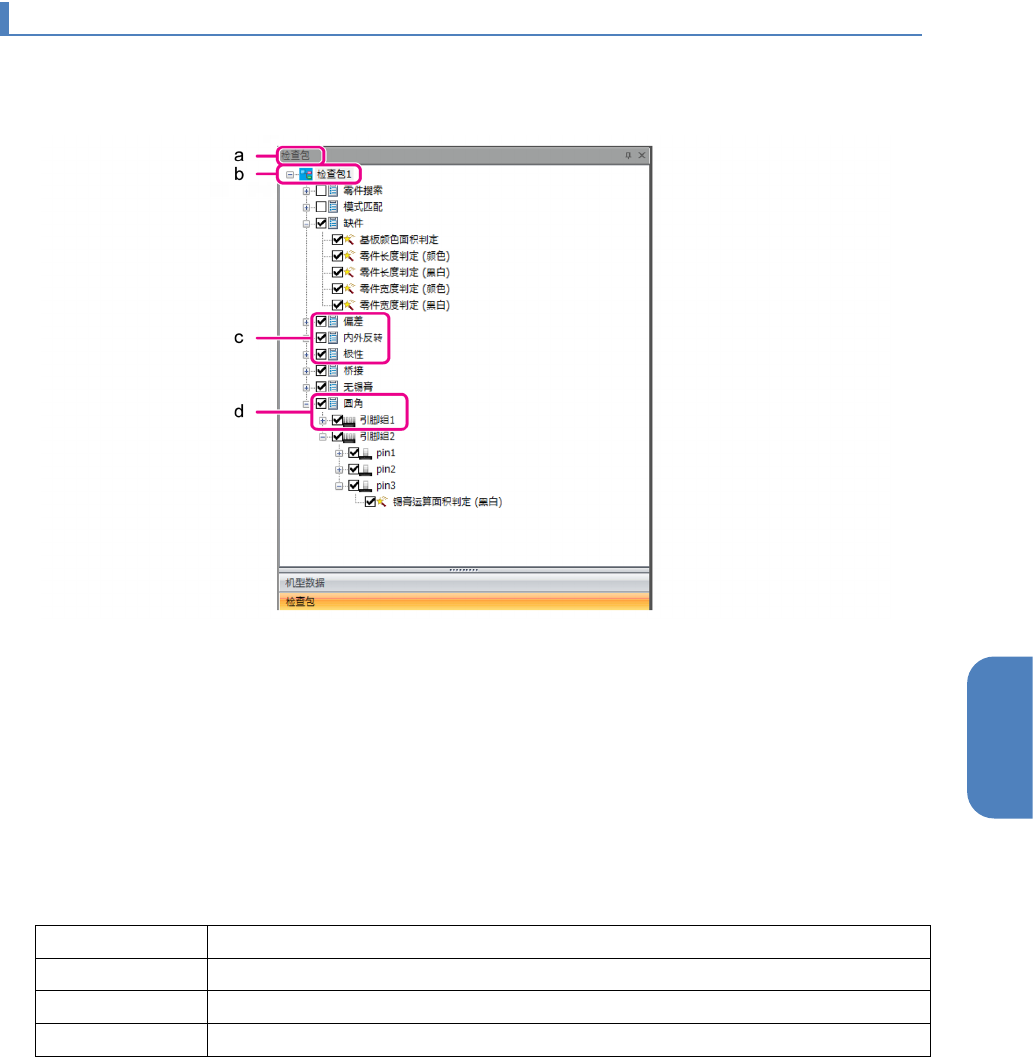 在检查包编辑画面上,检查包树状图显示在导航面板中。