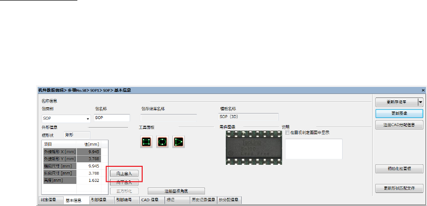 第 4 章 操作 篇 4- 5. 机型数据 的创建和编辑 94 基本信息的编辑 可显示和编辑检查包的 检查包名和零件外形 等信息。 1 在检查包树状图中选择检查包名。 2 根据需要,编辑基本信息。 可编辑的项目如下。 • 包分类的选择、新建 • 检查包名 • 零件外形修正 • 检查包基准角度修正 • 零件图像更新 • 分配信息注册 • 检查框初始化 • 搜索模型更新 • 向上舎入 • 向下舎入 • 正方形化