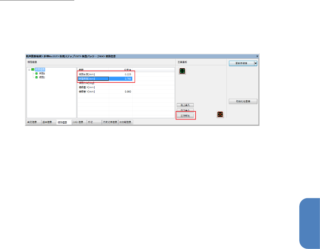 在检查包树状图中点击检查包名,选择[铜箔信息]选项卡。
