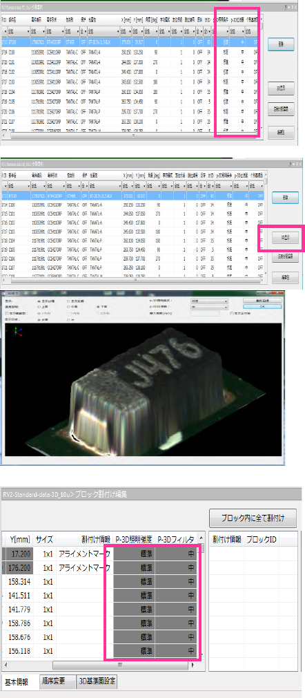 第 4 章 操作 篇 4- 5. 机型数据 的创建和编辑 161 4 (10) 编辑个别基准点 在 p- 3D 检查,可以 设定 每一个元件的个别 基准点。 1 通过将个别基准面项目设 为 ON ,可以设定个 别基准点。 ※默认值为 OFF 2 个别基准面项目置为 ON ,则在放大 图像区域 显示个别基准点 。 通过鼠标操作,可以编 辑个别基准点的位置 。 同时,在右击鼠标下的 菜单中可以添加 / 删除个 别基准点。 ※个别基准面项目置…